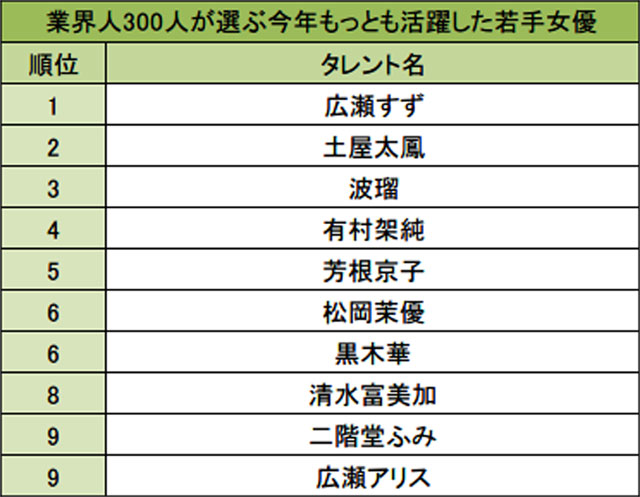 業界人300人に聞いた!2015年にもっとも活躍した若手女優ランキングTOP10!