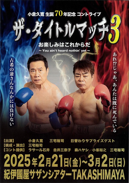 「ザ・タイトルマッチ3お楽しみはこれからだ~You ain’t heard nothin’ yet~」小倉久寛 生誕70年記念 コントライブ