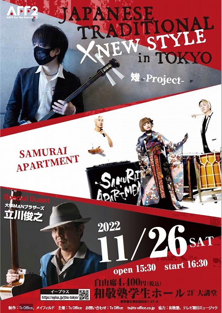 Ts Office主催、和楽器を大胆にとりいれ、トラディショナルな演奏の世界に新たな風を持込んだ2組のアーティストを中心としたライブイベントツアー、東京公演の詳細が決定しました。