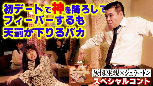 お笑い芸人のジェラードンが、週刊少年マガジンの人気漫画『灰仭巫覡』とコラボしたコント動画を公開した。“神の力で合コン”をするという内容で、悪ふざけを連発している。