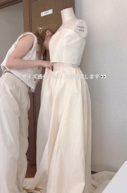 仮布でウエディングドレスの試作品を作るRionさん。仕上がりは…?