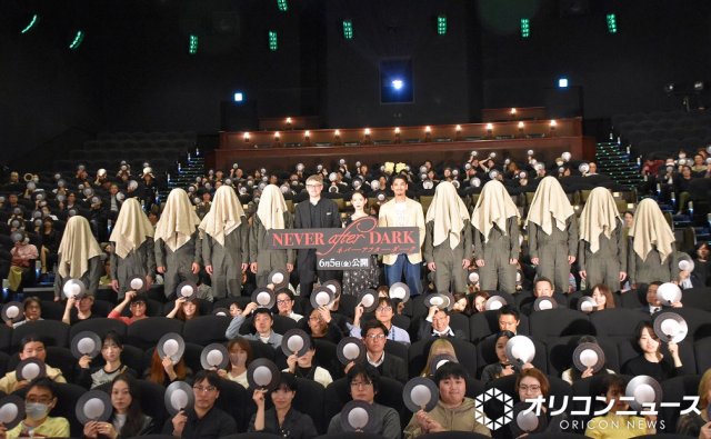 俳優の穂志もえか、賀来賢人、映画監督のデイヴ・ボイル氏が28日、都内で行われた映画『Never After Dark/ネバーアフターダーク』(6月5日日本公開)ジャパンプレミア試写会での舞台あいさつに登壇。賀来が映像製作会社設立の裏話を明かした。