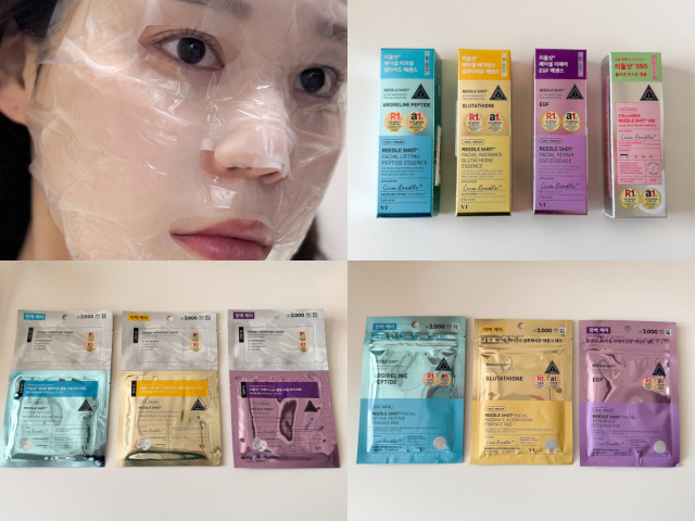 今回紹介するのは合計3種類。いずれもリードルショットと同じ成分ラインを使ったラッピングタイプのシートマスクで、肌悩みに合わせて選べるのが特徴です。パックは1枚あたり2000ウォンで購入可能。上にラッピングカバーを重ねて使う仕様のため、通常のシートマスクよりもしっかり密着しながらケアできます。使用時間は少し長めの30分。特別な予定の前夜など、“しっかり時間をかけて肌を整えたい日”のスペシャルケアとしてもおすすめのパックです。