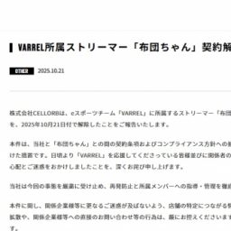 エンタメNEWS2025年10月21日 5:11 PM人気ストリーマーが契約解除