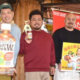 お笑いコンビ・野性爆弾のくっきー!、鬼越トマホーク(良ちゃん、金ちゃん)が28日、都内で行われた日本コカ・コーラ『からだ...