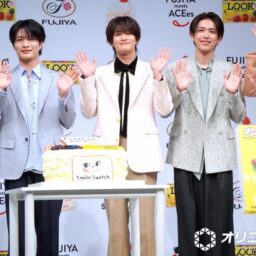 5人組グループ・ACEes(浮所飛貴、那須雄登、作間龍斗、深田竜生、佐藤龍我)が2日、都内で行われた不二家『Smile ...