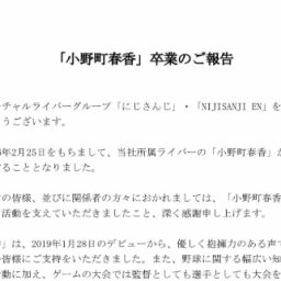 バーチャルライバーグループ「にじさんじ」は25日、小野町春香が来年2月25日をもって卒業すると発表した。 【画像】にじ...