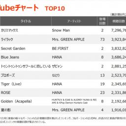 今週(2025/8/29~9/4)のYouTubeチャートTOP100の週間総視聴回数は前週比3.0%減、TOP100の...