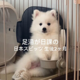 スピッツの子犬が水入れのボウルに前足を浸け、気持ちよさそうに座る様子を撮影した動画がInstagramに投稿され、話題を...